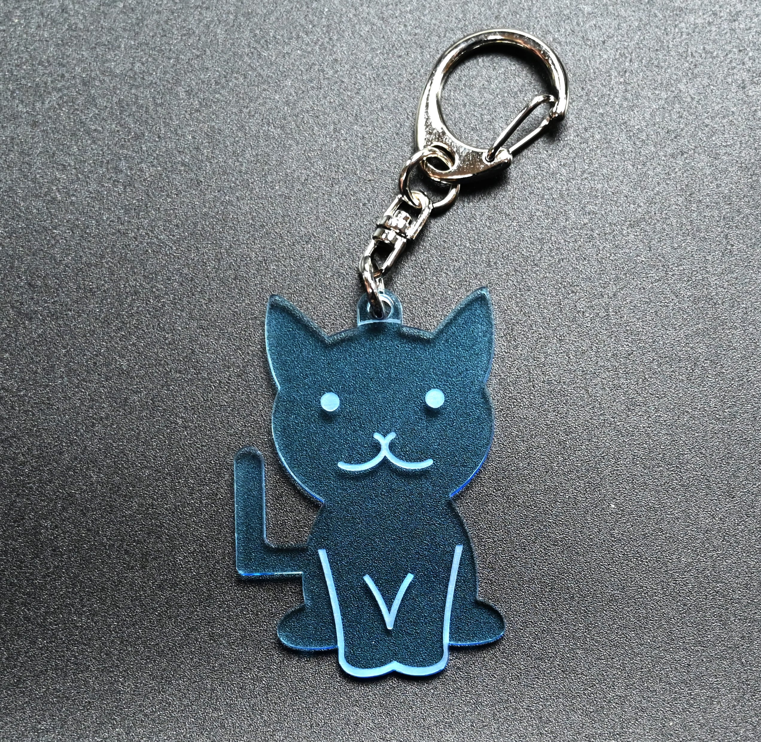 オリジナル 幸運の尾曲がり猫神 ロゴキーホルダー(ブルー)