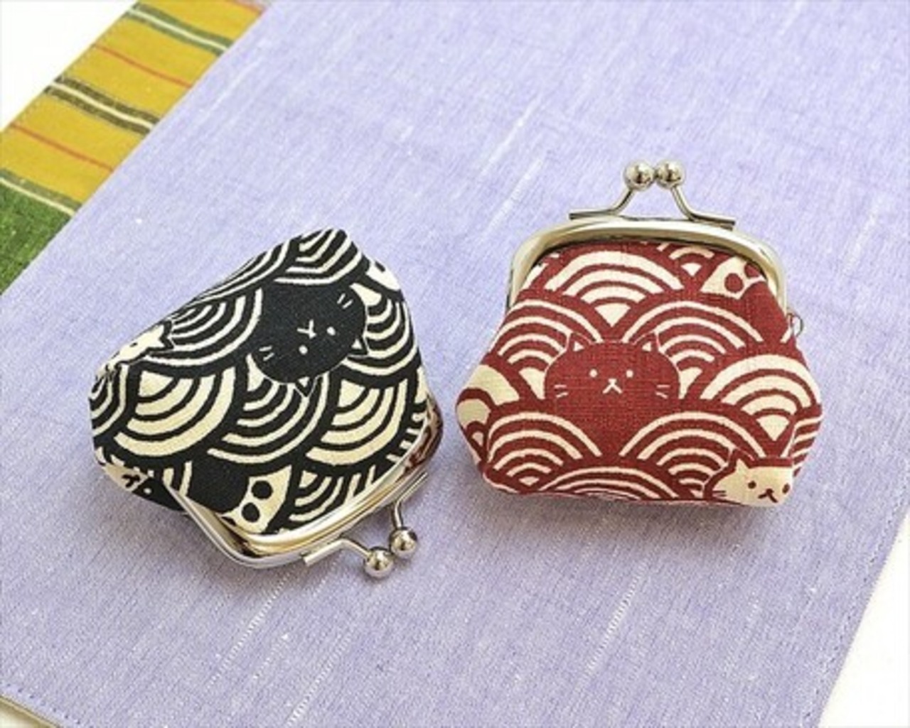 波猫ちゃんデザイン ポーチ(小銭入れ)(がま口タイプ)小 2色