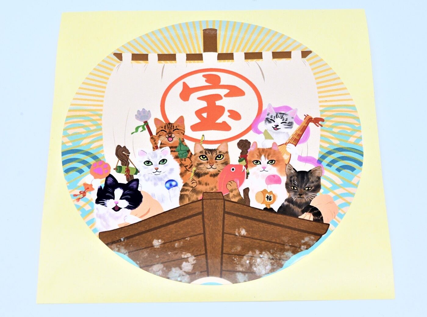 ★尾曲がり猫神社限定の猫ちゃん『七福猫神 宝船』ステッカーです (1枚入り)