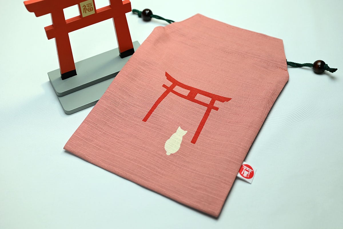 尾曲がり猫神社オリジナル 御朱印帳袋(お守り型)ピンク 「健康・愛情・平和」