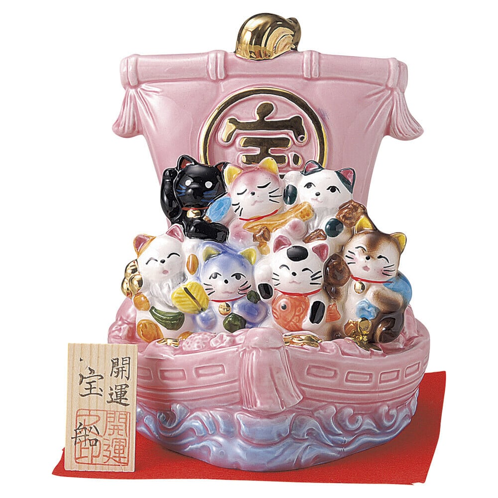 招き猫の七福神が宝船にのったとても縁起の良い逸品です。